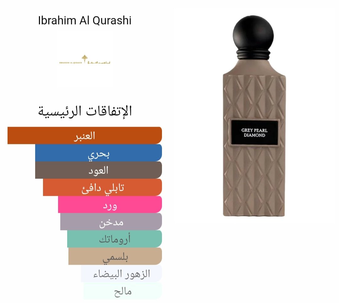 عطر جري بيرل دايموند (Grey Pearl Diamond) هو عطر شرقي – زهري يناسب كلا الجنسين، يجمع بين نفحات منعشة وحلوة تعكس توازنًا بين الحضارة الغربية والأصالة الشرقية.